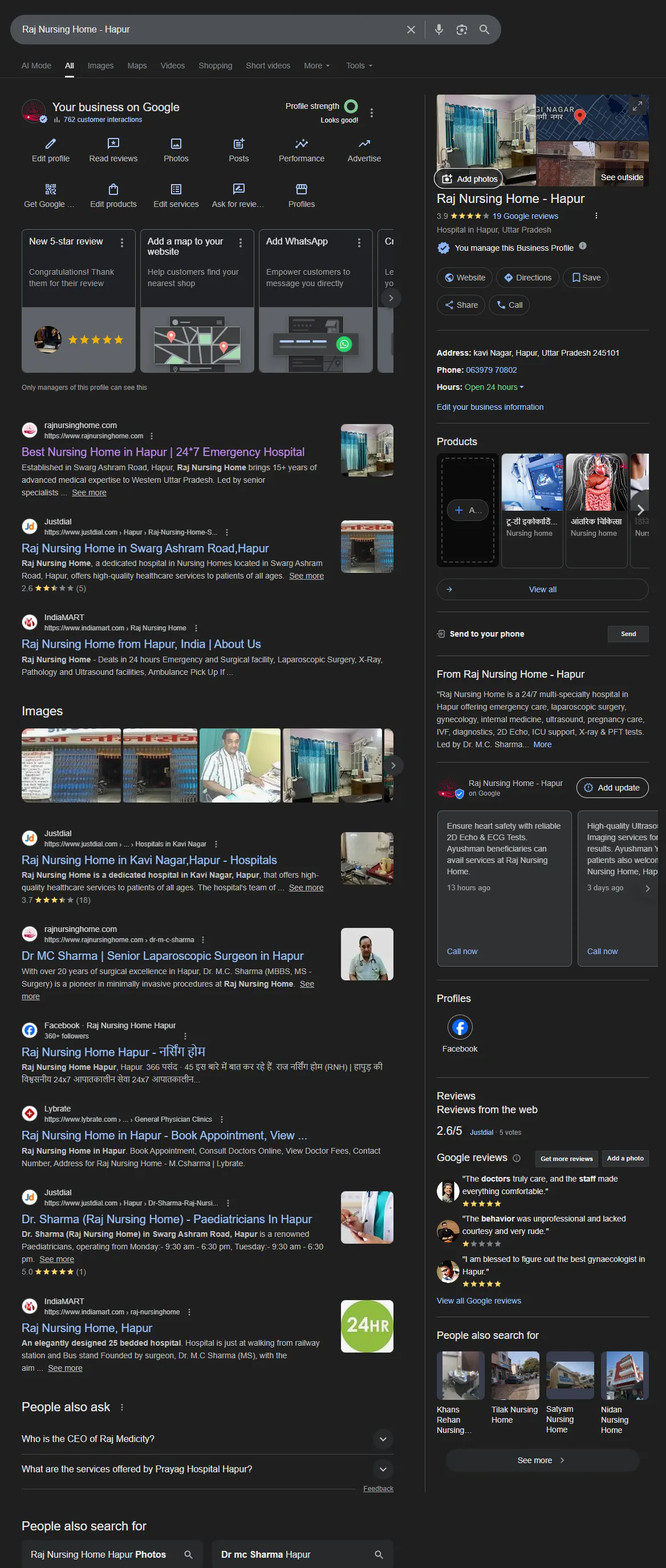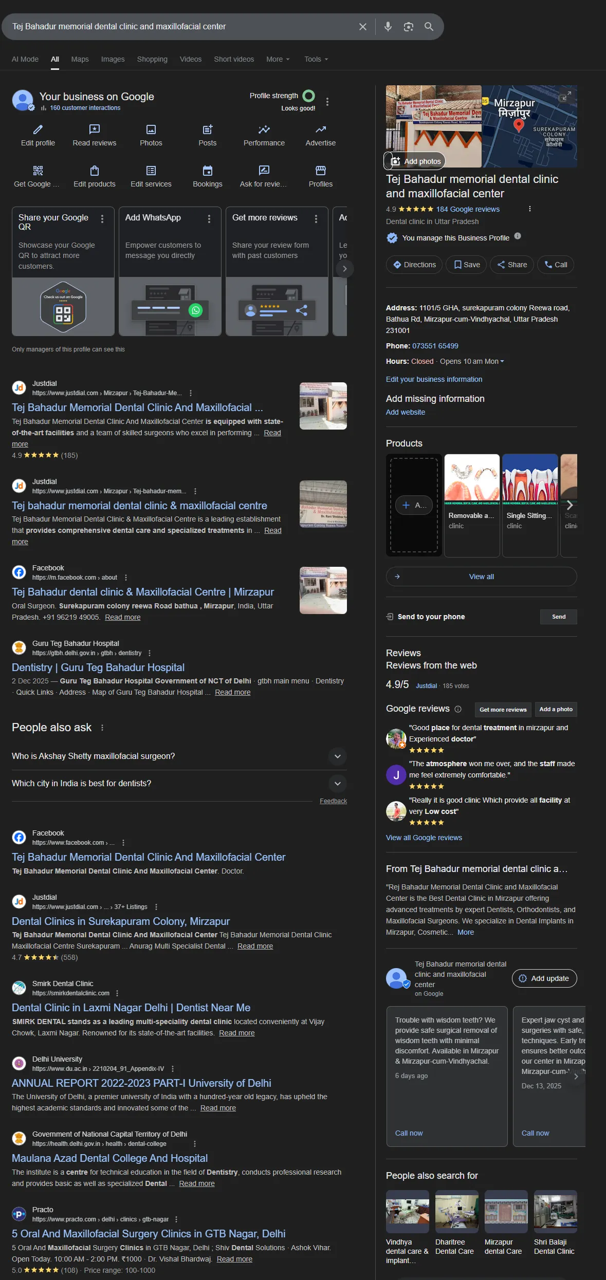 Complete Google My Business setup and optimization for a premium dental clinic in Greater Noida. Improved local search visibility, patient trust, and appointment bookings through professional branding, keyword-optimized content, and consistent profile updates.