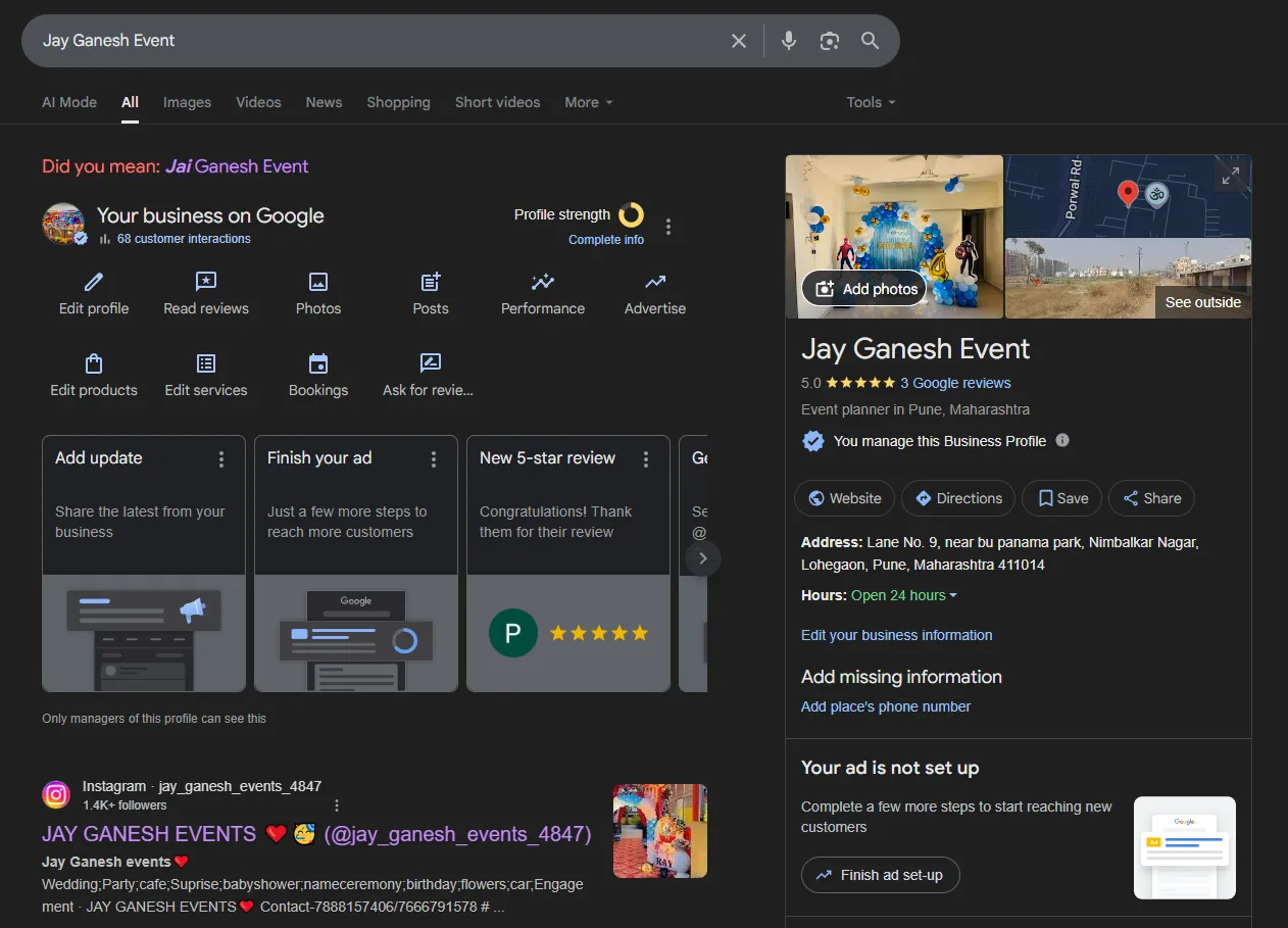 Comprehensive GMB transformation for event management company. Created compelling business description, optimized for event-related keywords, and implemented regular post strategy to showcase past events.