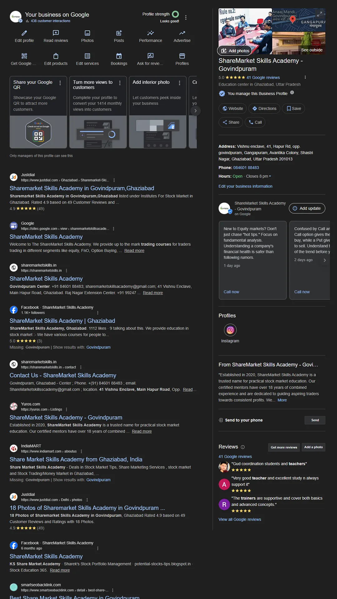 Complete Google My Business setup and optimization for a stock market and cryptocurrency training academy. Improved local visibility, trust, and student inquiries through keyword-rich content, professional branding, and regular updates.