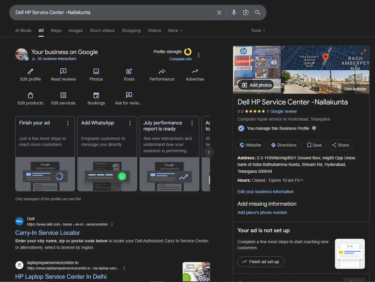 Strategic GMB setup and optimization for computer services provider. Implemented multi-location management, enhanced business categories, and created engaging posts to drive customer engagement.