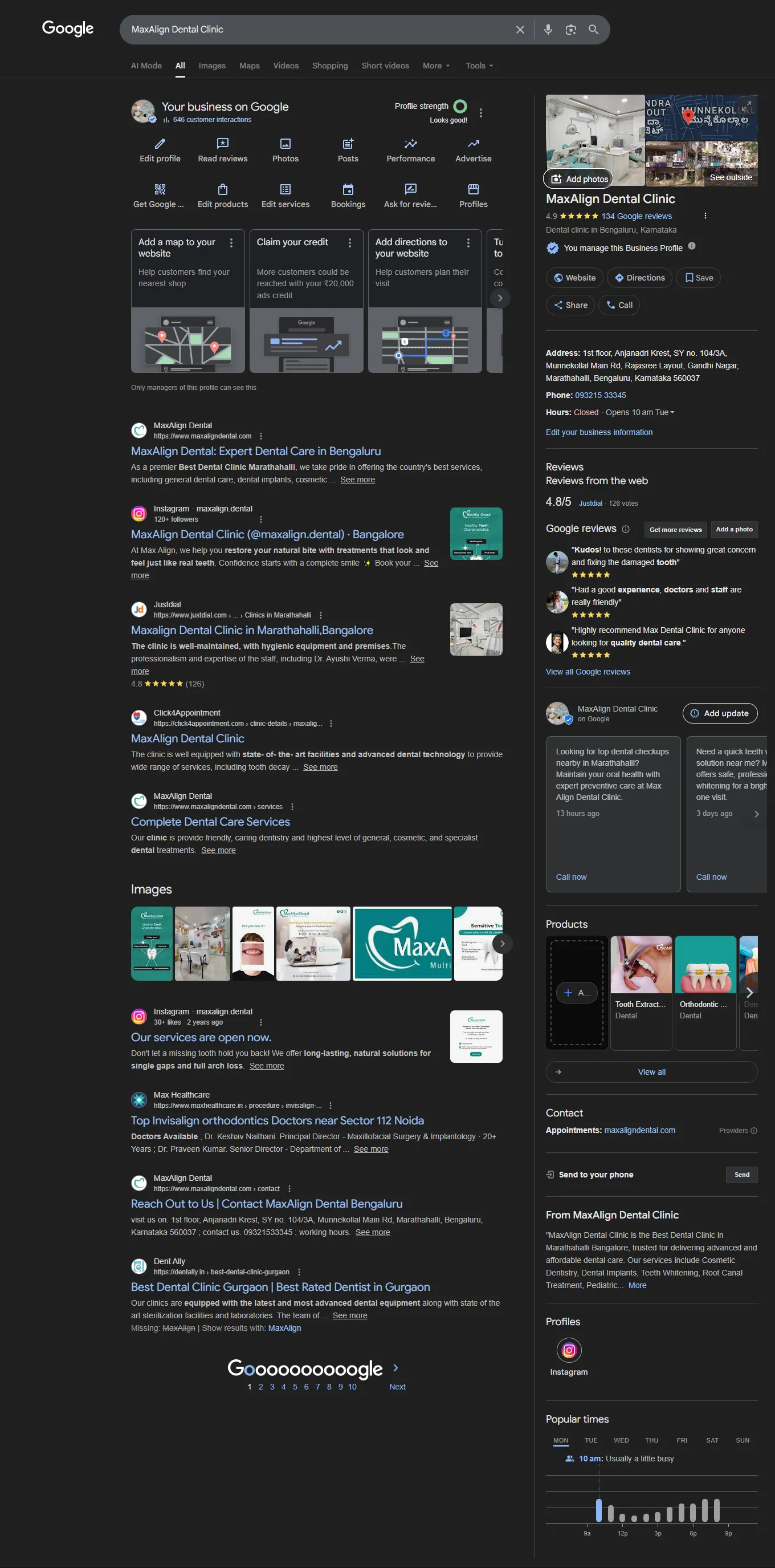 Complete Google My Business optimization for a dental clinic, improving local search visibility and patient engagement. Enhanced profile with professional photos, accurate business information, and strategic keyword optimization.